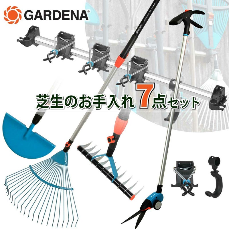 芝生のサッチングやキワ刈りに役立つアイテムなど芝生を育てるお手入れツール7点セット。