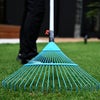 上向きに湾曲したデザインのワイヤーのレーキ。砂利の上の落ち葉集めには最適です。