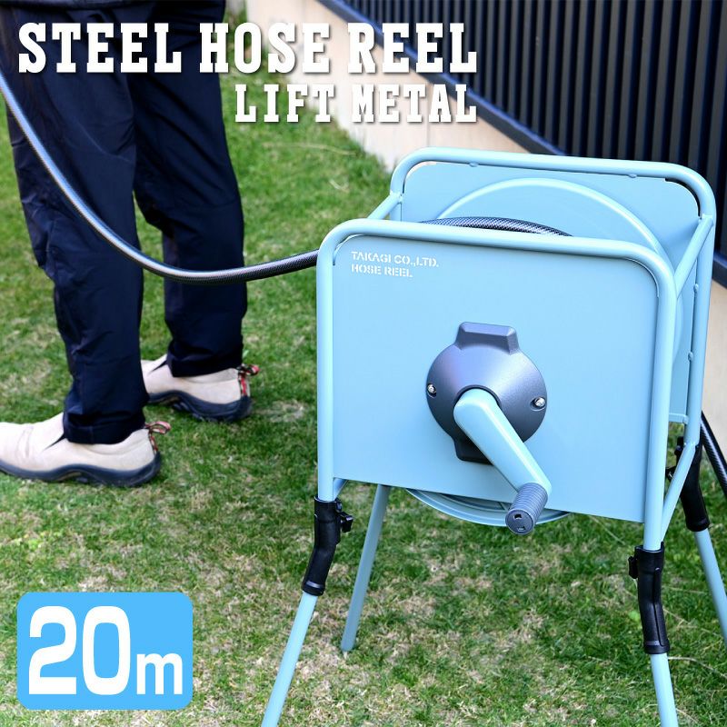 ボディ部分が金属製で耐久性の高いホースリールです。