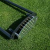 →ターフカッターを芝生に刺して老化した芝生の根を切断します