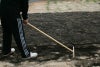 種まきや芝張りの際、最初の整地が肝心。