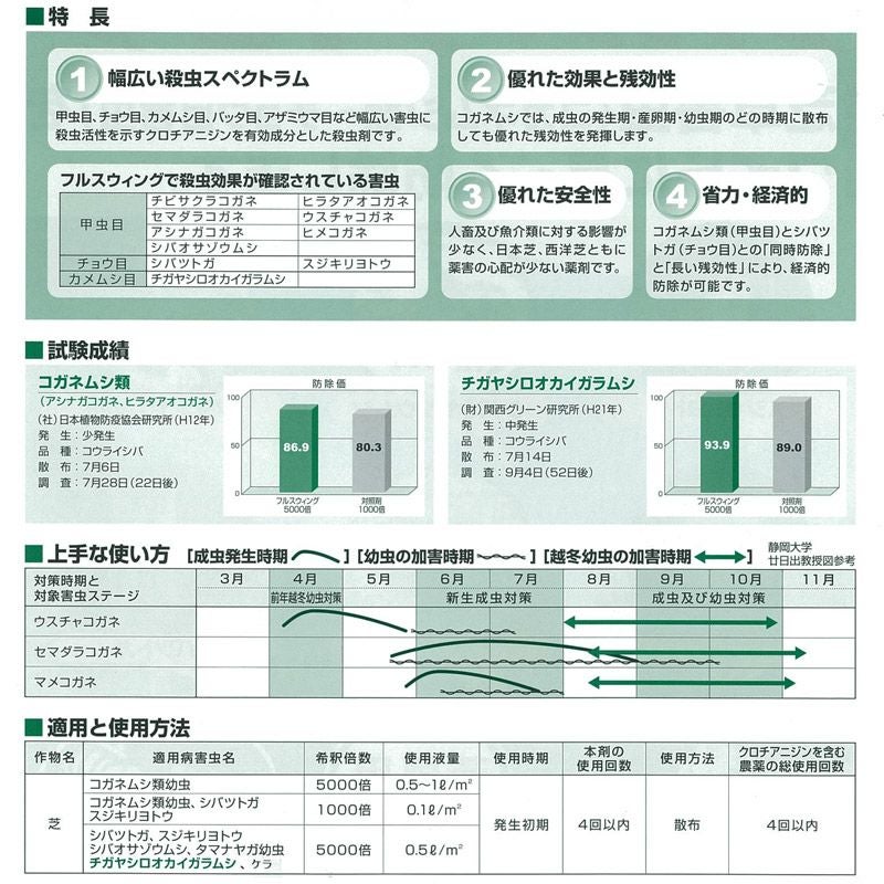 他の画像を見る /使用説明書付き/プロが選ぶ、ゴルフ場使用の芝生専用高級殺虫剤。使いやすい顆粒水和剤 芝生用殺虫剤 フルスウィング 100g入り 販売価格 ¥ 5,000 税込 カートに入れる お気に入りに登録する