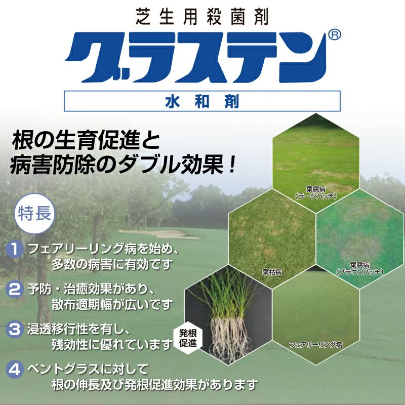 他の画像を見る /使用説明書付き/計量スプーン付き/芝病害の総合防除剤です。 ゴルフ場も使用の芝生用殺菌剤 グラステン水和剤 1kg入り 販売価格 ¥ 9,900 税込 カートに入れる お気に入りに登録する