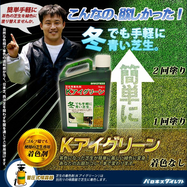他の画像を見る /説明書付き/茶色の芝生を手軽に緑色に塗り替えよう!これで冬も緑の芝生も夢じゃない♪ 着色剤散布セット 芝生用着色剤 バロネス Kアイグリーン 1kg&蓄圧式噴霧器 単頭式ノズル 4リットル用 日本製 fp-7411 販売価格 ¥ 13,300 税込 カートに入れる お気に入りに登録する