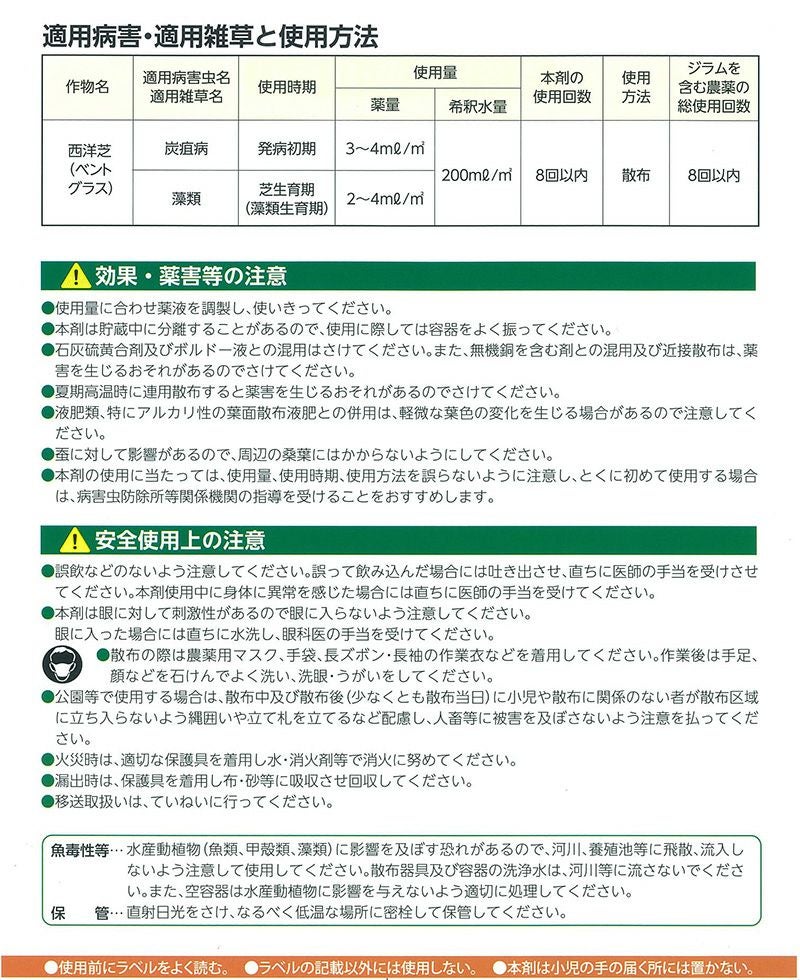 他の画像を見る /使用説明書付き/芝生(ベントグラス)への炭疽病の防除と、藻類防除に。 芝生に使える藻専用殺菌剤 モノドクターフロアブル 2L入り 販売価格 ¥ 15,400 税込 カートに入れる お気に入りに登録する