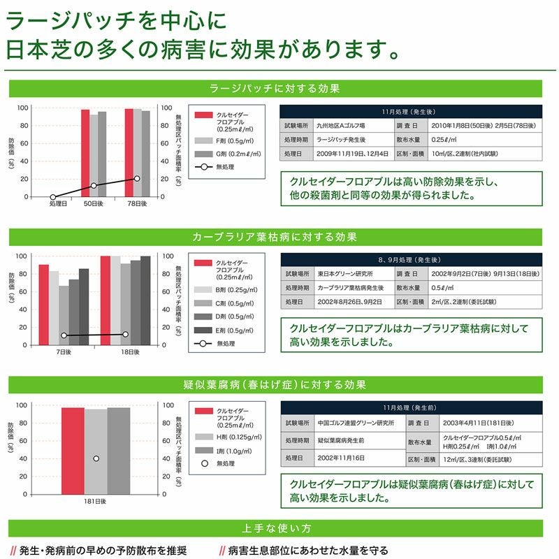 他の画像を見る /使用説明書付き/日本芝に発生するラージパッチ・春はげ症をはじめ、幅広い病害を同時に防除! ゴルフ場も使用の芝生用殺菌剤 クルセイダーフロアブル 500ml 販売価格 ¥ 15,000 税込 カートに入れる お気に入りに登録する