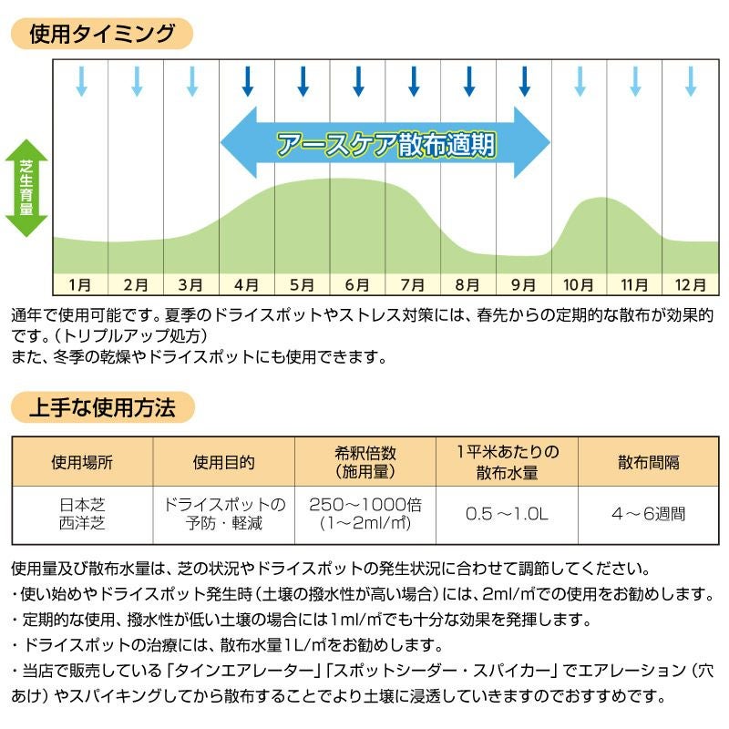 他の画像を見る 使用説明書付きドライスポットに優れた効果。土壌浸透効果が土壌環境を改善します。 芝生用土壌浸透剤 アースケア 1L入り 販売価格 ¥ 8,800 税込 カートに入れる お気に入りに登録する