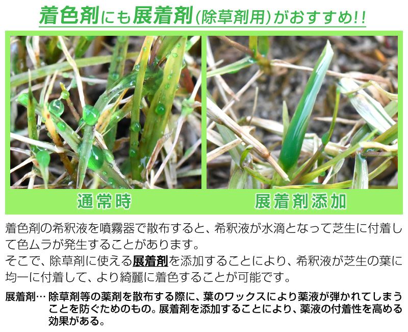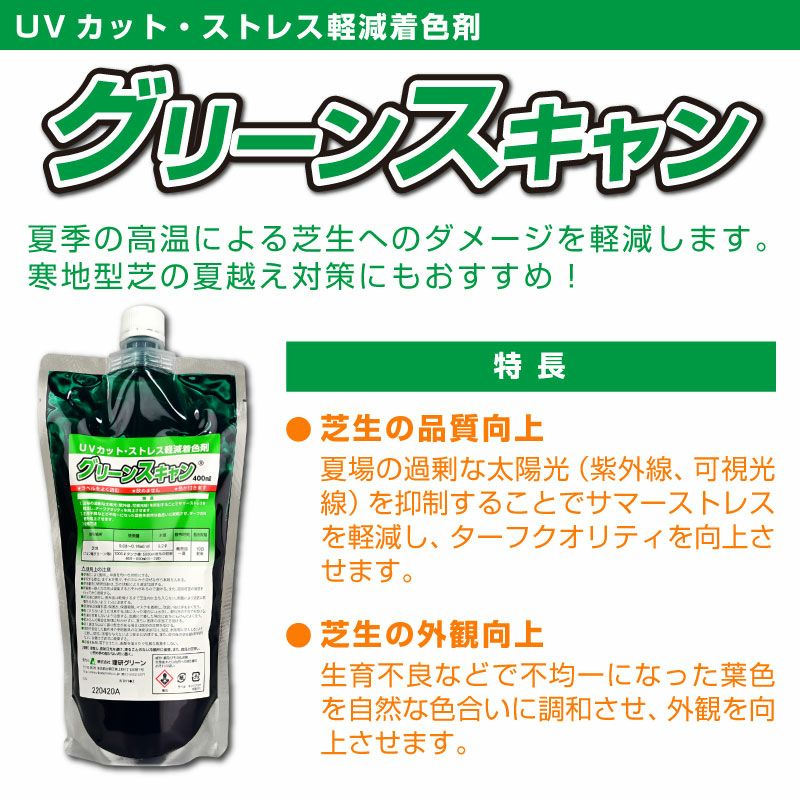 他の画像を見る 使用説明書、計量スポイト付きベントグラスの夏越え対策、暖地型芝の色落ち対策におすすめ!夏場の過剰な太陽光を抑制し、ターフの外観と品質を向上させます。 芝生用UVカット・ストレス軽減着色剤 グリーンスキャン 400ml 販売価格 ¥ 8,800 税込 カートに入れる お気に入りに登録する