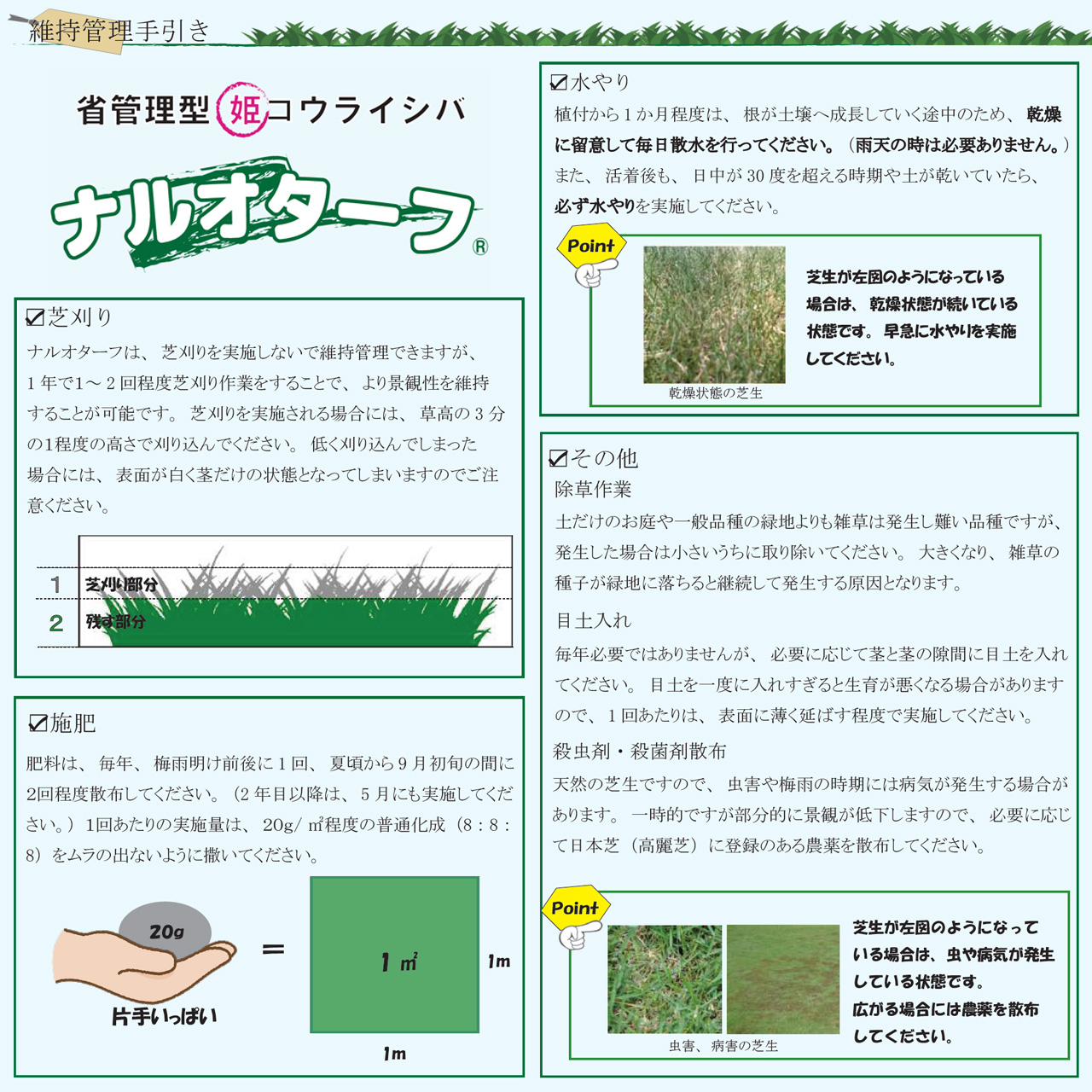 【直送】ナルオターフ(姫高麗芝)(張り芝用) 鳥取産 1平米(0.3坪分)送料無料