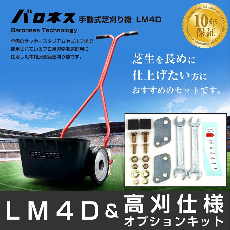 【お得な2種セット♪】【LM4D】【ハイカット】バロネス 手動式芝刈り機 LM4D+LM4D専用 高刈(ハイカット)仕様オプションキット【送料無料】