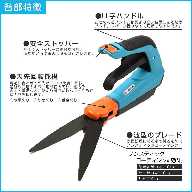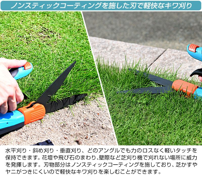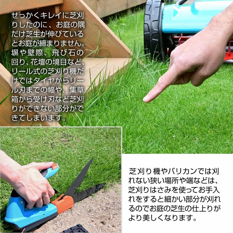 他の画像を見る 芝刈り機では刈れないキワの処理はお任せお手入れが難しい場所で大活躍 芝刈りはさみ 回転式 芝生鋏 340mm 芝刈りばさみ 芝生のお手入れ 販売価格 ¥ 3,580 税込 カートに入れる お気に入りに登録する