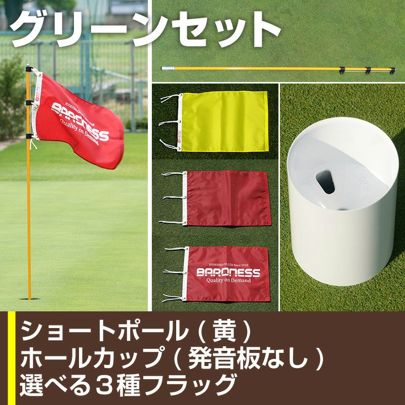 グリーンセット ホールカップ発音板なし&ショートポール 黄色&ピンフラッグ