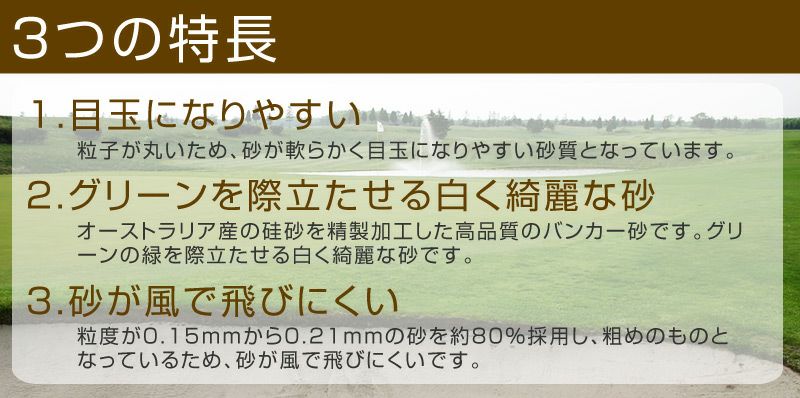他の画像を見る ゴルファーの憧れ!白く美しいバンカーがあなたのお庭に! /送料無料/目玉ができちゃうバンカー砂 30kg入り×10袋セット 販売価格 ¥ 44,800 税込 詳細を見る お気に入りに登録する
