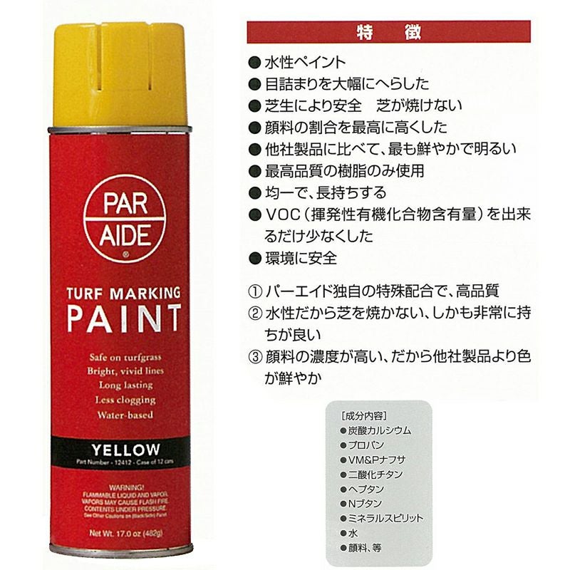 他の画像を見る 大容量お得セットゴルフ場でも使われる、芝生により安全なライン用塗料芝生の上での運動会にも便利です♪ ターフマーキングペイント イエロー 黄 3本入り 販売価格 ¥ 9,405 税込 カートに入れる お気に入りに登録する