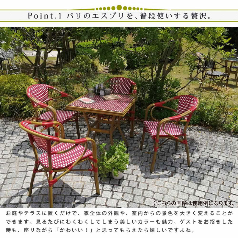 サイズ:テーブル/(約)幅 700×奥行 700×高さ 745mm、チェア/(約)幅 580×奥行 600×高さ 820mm 座高 450mm