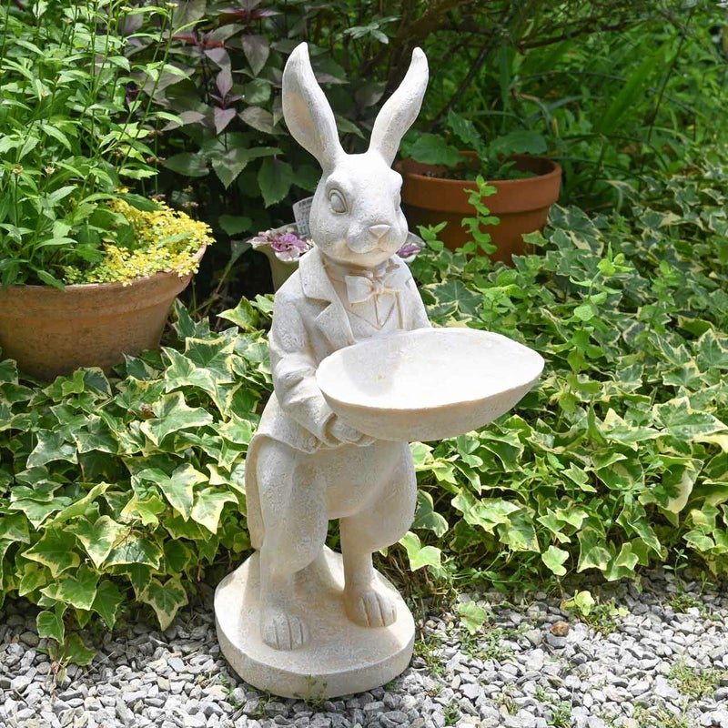 絵本の不思議の国のアリスから飛び出したようなウサギの置物