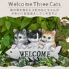 魚の骨を抱えた3匹のねこちゃんがかわいくお出迎え♪