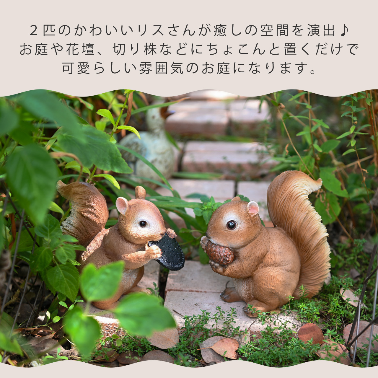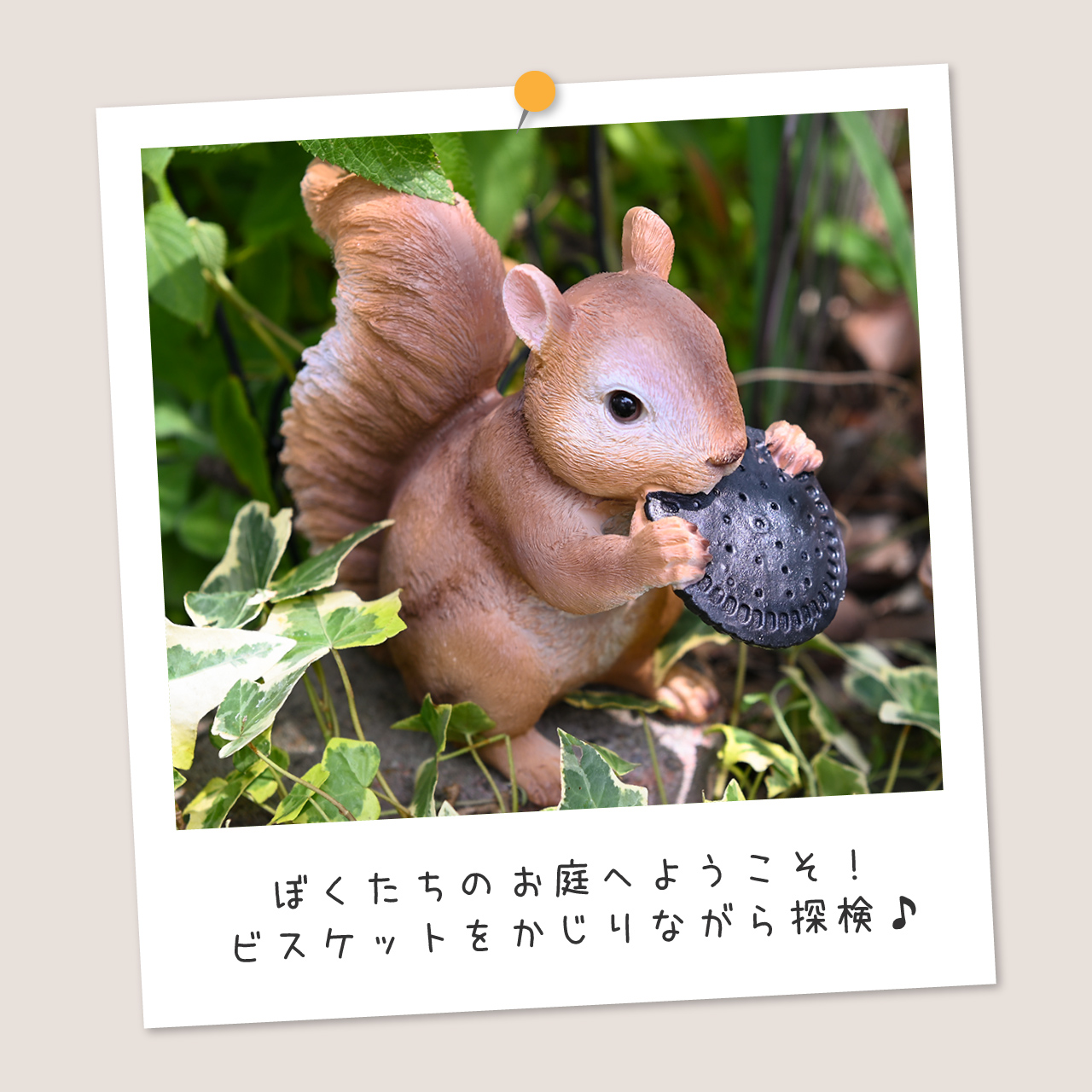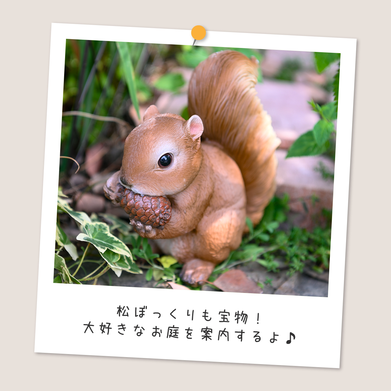 手のひらサイズでナチュラルにお庭にマッチするので、まるで本当にリスがお庭で遊んでいるみたい♪