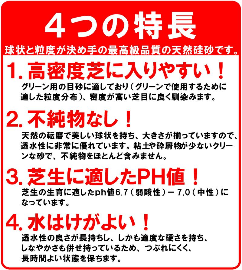 他の画像を見る ゴルフ場グリーンで使用の洗浄砂。 【洗砂】グリーンづくりにコレがいい!バロネス 芝生の目砂・床砂 10kg入り(6.7リットルサイズ)×1袋 販売価格 ¥ 1,980 税込 カートに入れる お気に入りに登録する