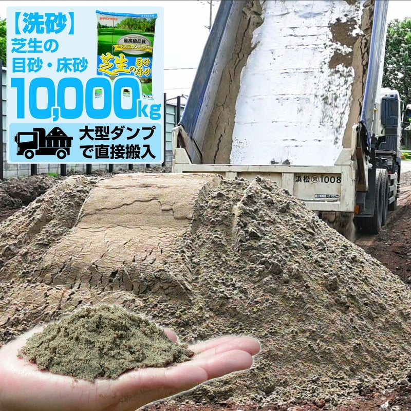 川砂を良く洗い、ふるいにかけた粒子の細かい川砂(洗い砂)です。芝生の目土やゴルフ場グリーンの床土として使用されます。水はけが悪い場所は床土として本品を混ぜてお使いいただくことをオススメします。