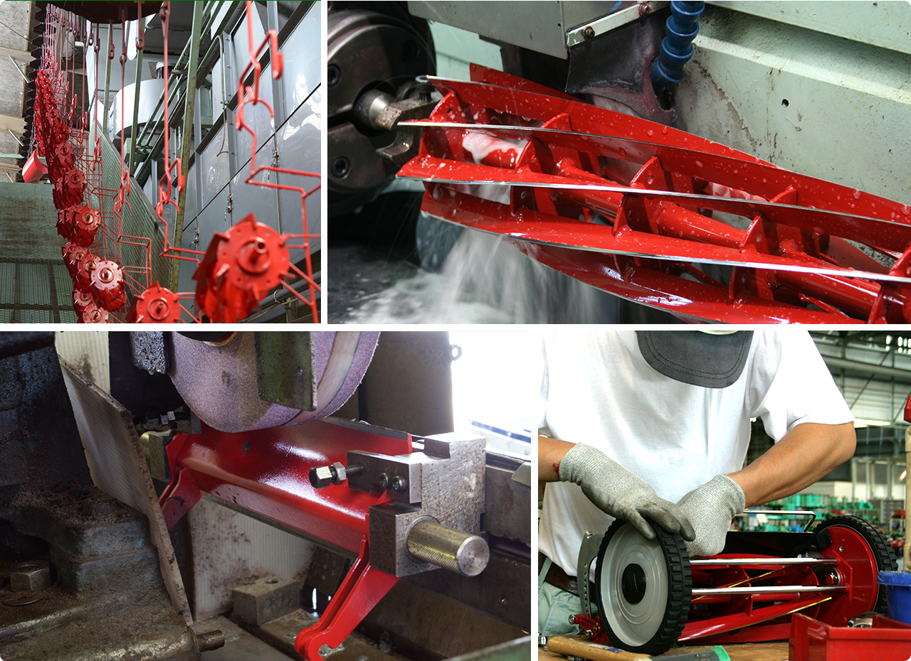 日本刀を理想とした切れ味の鋭い刃は、芝を傷めず健康に保つことを追求したもの。