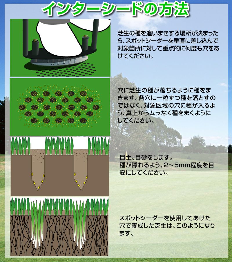 芝の品種転換・追いまきやドライスポット・湿害対策の穴あけに。