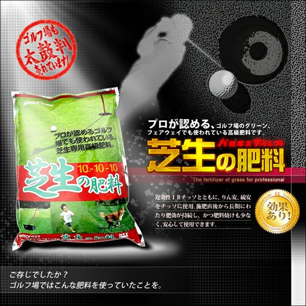 プロが認める、ゴルフ場のグリーン、フェアウェイでも使われている高級肥料です。芝生のお手入れに。