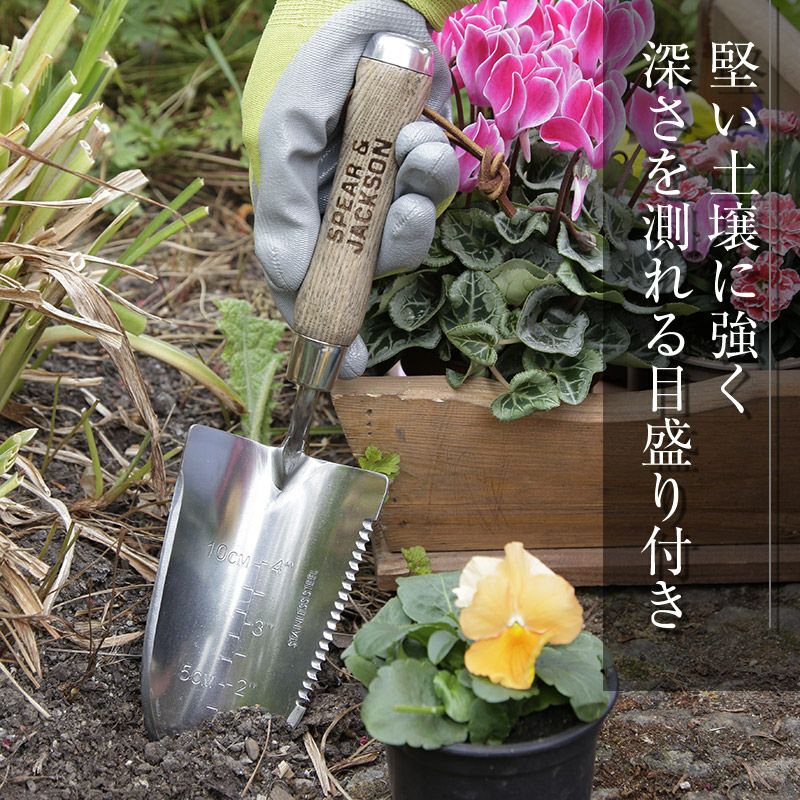 他の画像を見る 260年の伝統の味わい。置くだけで絵になるオシャレでカッコイイ、ガーデンツール 花木の移植に便利な目盛り付き。根を切るのにも最適な園芸用シャベル 英国ブランド Spear&Jackson トラディショナル ステンレス 剣スコップ 丸形 販売価格 ¥ 9,380 税込 カートに入れる お気に入りに登録する
