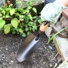 木製のハンドルと重厚感のある炭素鋼ヘッドが素敵なハンドスコップ。