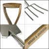 柄は天然木、ヘッド部分はピカピカのステンレスでお庭にポンと置いておくだけでも絵になります。