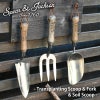 サビや土が付きにくい鏡面仕上げと耐候性木材のハンドルで耐久性を実現。