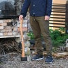 重量感あるヘッドと鋭さが長続きする炭素鋼刃で簡単に薪割りが可能に。