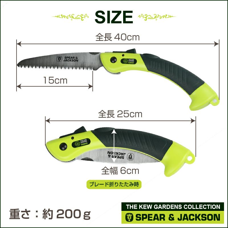 他の画像を見る 木の枝などの生木の剪定作業に最適 折り畳み式なので安全に持ち運び、保管できます 英国ブランド Spear&Jackson キューガーデンコレクション 折りたたみ剪定のこぎり 刃長150mm Sサイズ 販売価格 ¥ 2,880 税込 カートに入れる お気に入りに登録する