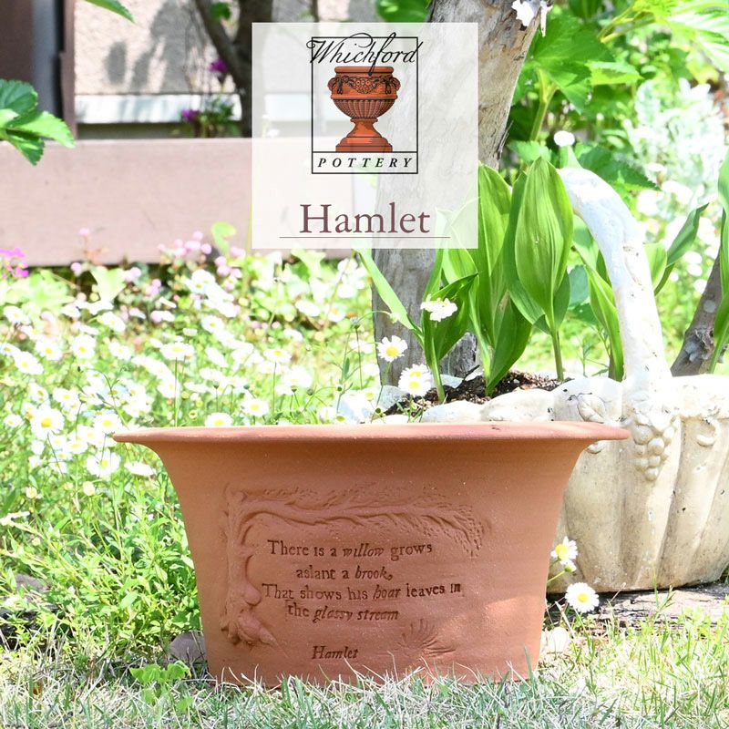 ハムレットの詩の一部とその情景がデザインされており、知的で品のあるテラコッタ鉢です。