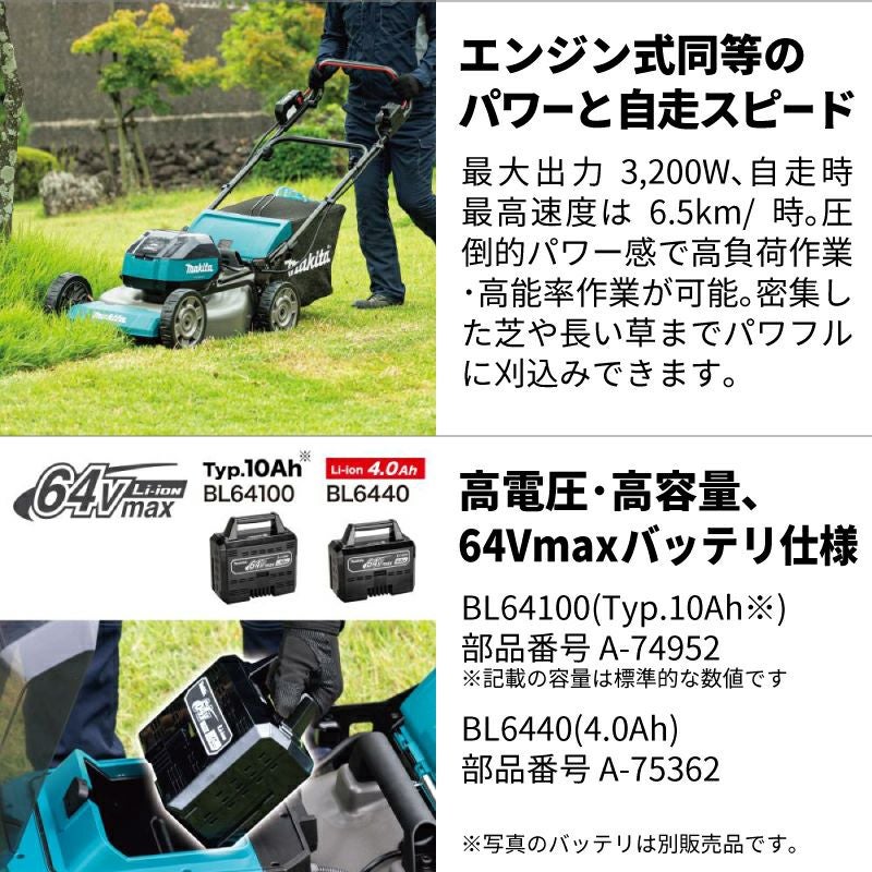 他の画像を見る 64Vmaxバッテリ仕様、エンジン式同等のパワーと自走スピード 【予約注文品 約1週間で出荷】マキタ 充電式ロータリー式芝刈り機 MLM004J 刈込幅530mm 64Vmax 本体のみ 販売価格 ¥ 225,500 税込 詳細を見る お気に入りに登録する