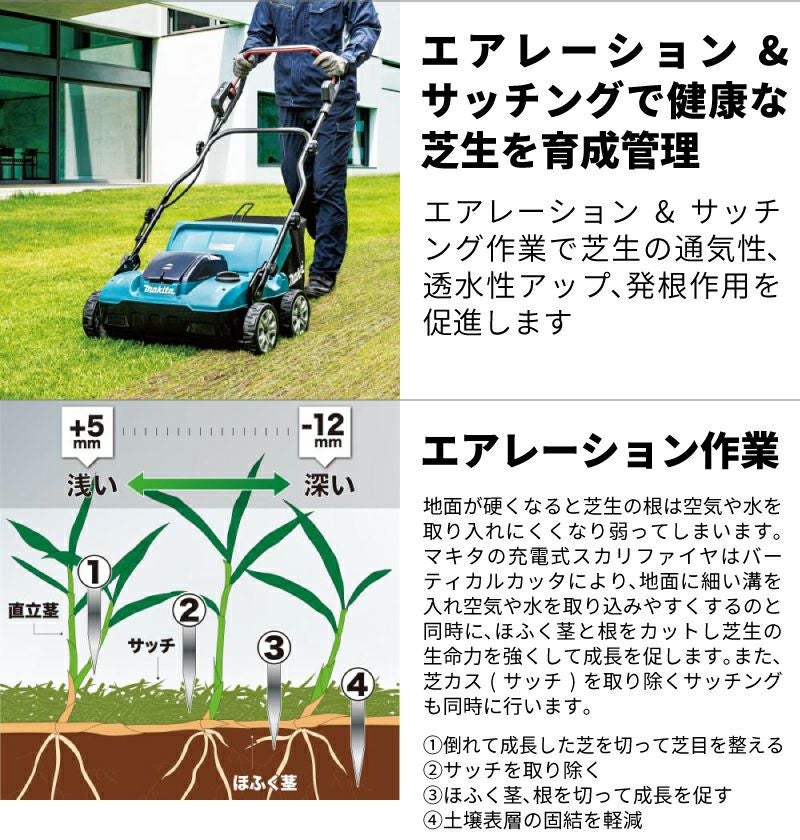 他の画像を見る エアレーション&サッチングで健康な芝生を育成管理 【予約注文品 約1週間で出荷】マキタ 充電式スカリファイヤ MUV001G 作業幅380mm 40Vmax 本体のみ 販売価格 ¥ 124,300 税込 詳細を見る お気に入りに登録する