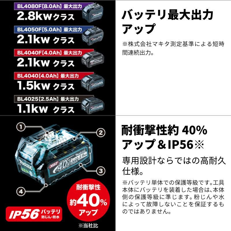 他の画像を見る マキタ独自の「スマートシステム」 最適給電+最適充電の次世代バッテリ 【予約注文品 約1週間で出荷】マキタ 40Vmax リチウムイオンバッテリ BL4080F A-73368 販売価格 ¥ 59,400 税込 詳細を見る お気に入りに登録する