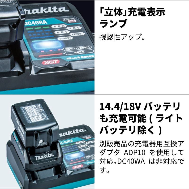 他の画像を見る マキタ独自の「スマートシステム」対応、最適給電+最適充電 【予約注文品 約1週間で出荷】マキタ 40Vmax 急速充電器 DC40RA JPADC40RA 販売価格 ¥ 15,950 税込 カートに入れる お気に入りに登録する