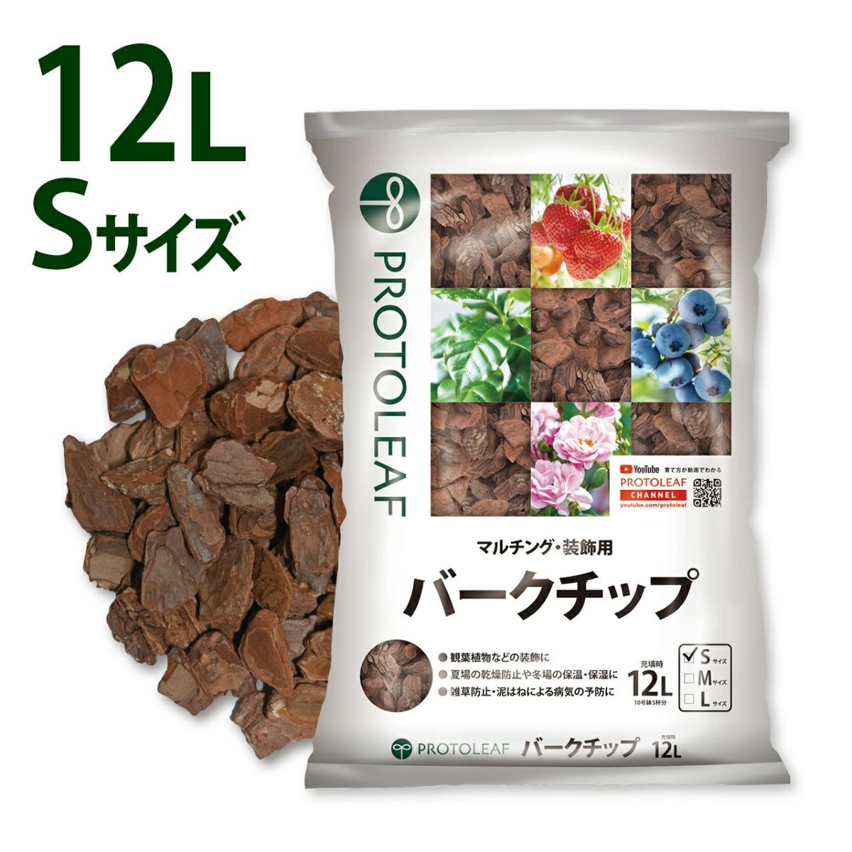 他の画像を見る 装飾はもちろんマルチング材として雑草防止・泥跳ねによる病気の予防に プロトリーフ バークチップ Sサイズ 12L 4袋セット 販売価格 ¥ 7,180 税込 カートに入れる お気に入りに登録する