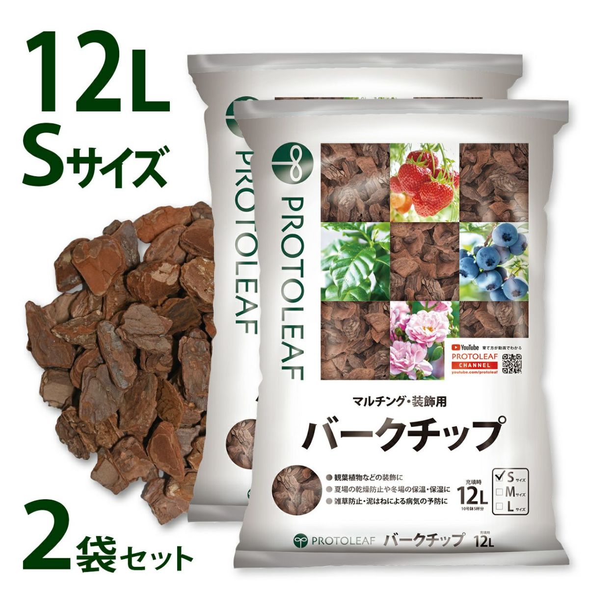 他の画像を見る 装飾はもちろんマルチング材として雑草防止・泥跳ねによる病気の予防に プロトリーフ バークチップ Sサイズ 12L 2袋セット 販売価格 ¥ 3,850 税込 カートに入れる お気に入りに登録する