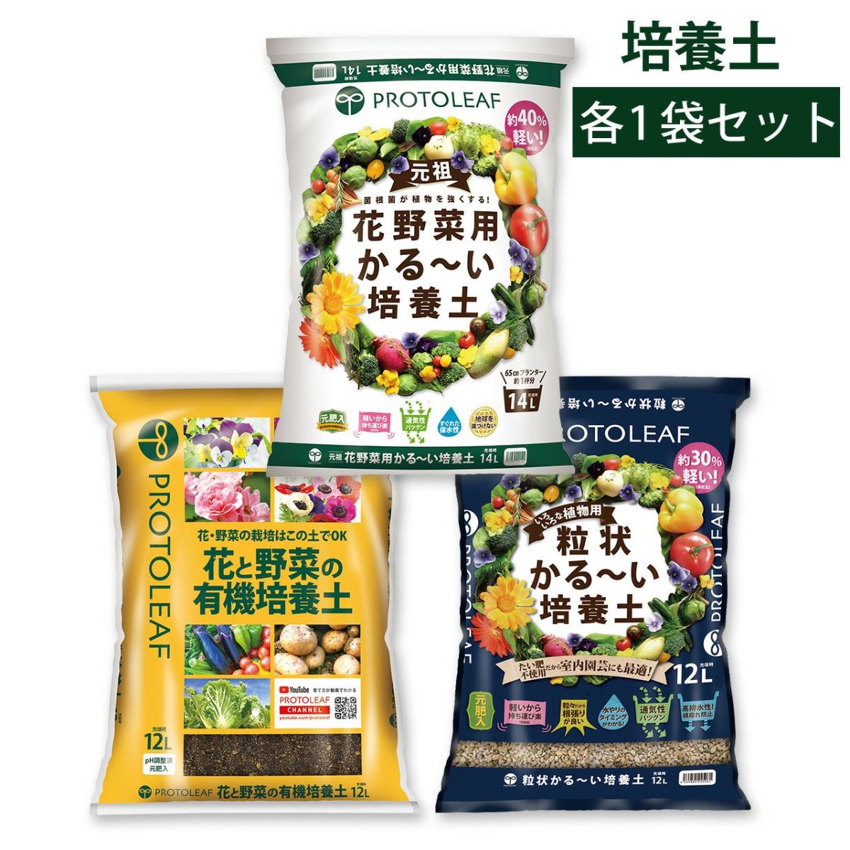 他の画像を見る かる~い培養土、粒状培養土、有機培養土の3種試し比べセット! 【培養土セット】プロトリーフ 花野菜用かる~い培養土 14L&花と野菜の有機培養土 12L&粒状かる~い培養土 12L 各1袋セット 販売価格 ¥ 3,480 税込 カートに入れる お気に入りに登録する