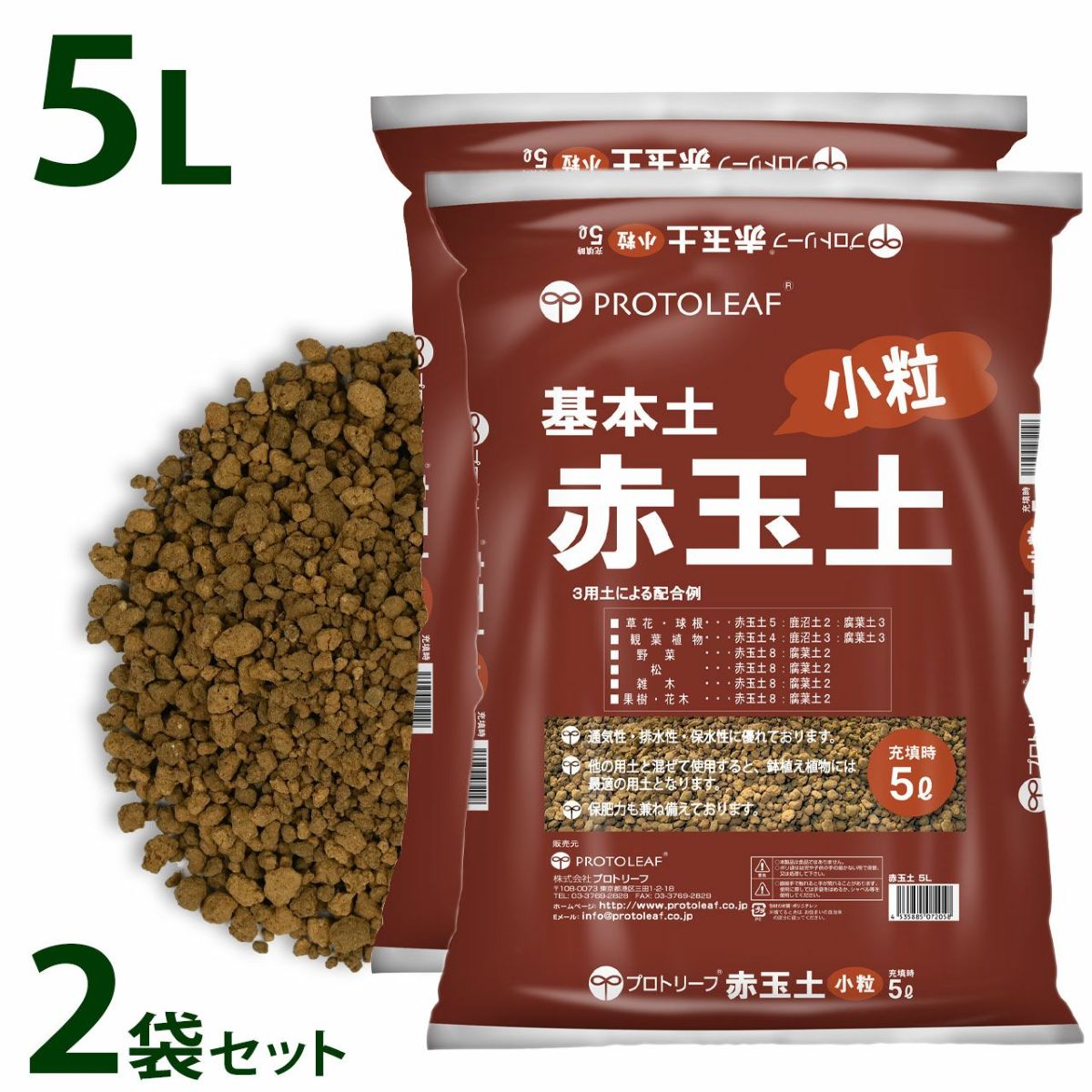 他の画像を見る あらゆる植物の基本用土に 硬質でくずれにくい、栃木県産の良質な赤玉土 プロトリーフ 硬質 赤玉土 中粒 5L 1袋 基本用土 販売価格 ¥ 1,210 税込 カートに入れる お気に入りに登録する