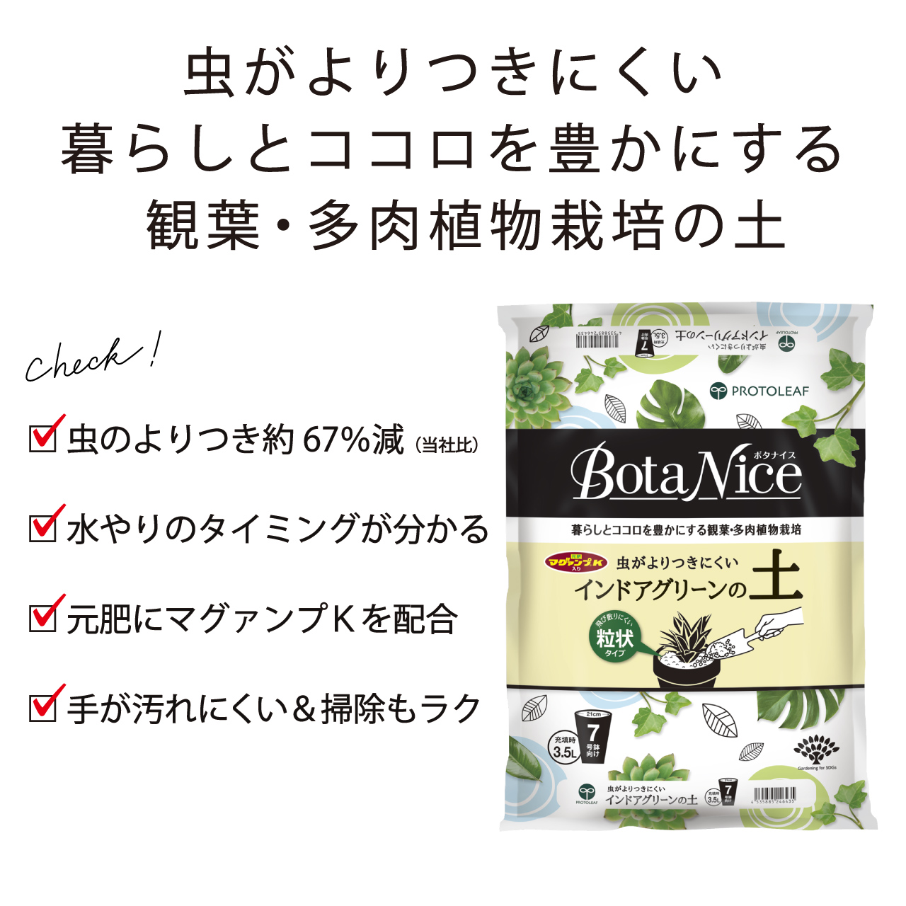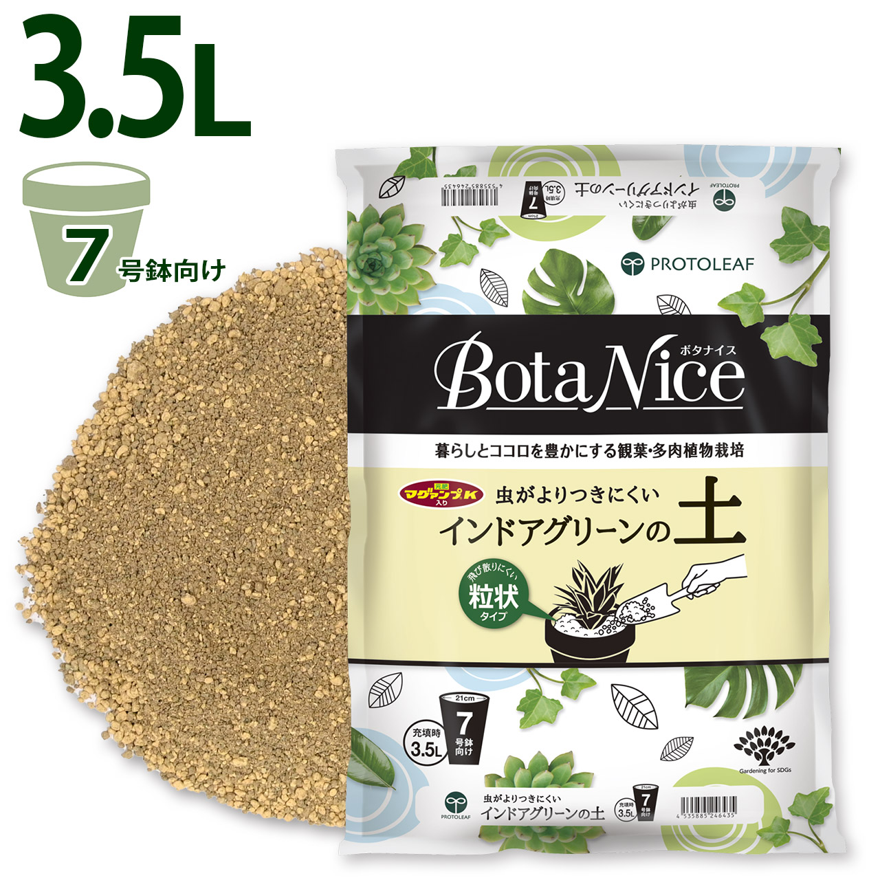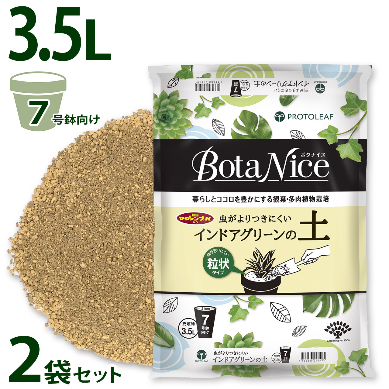 プロトリーフ BotaNice インドアグリーンの土 3.5L 2袋セット 観葉植物 多肉 室内用 7号鉢向け 培養土 まとめ買い