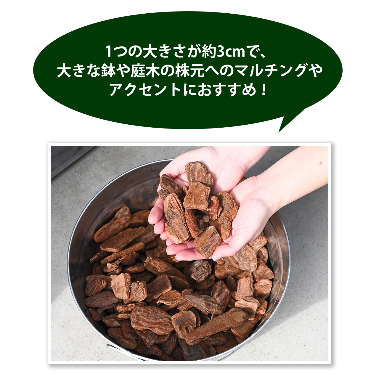 Mサイズは1つが約3cmとなり、大きな鉢や庭木の株元へのマルチングやアクセントに向いています。