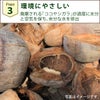 地球を掘らない「ココヤシガラ」(廃棄されるココナッツの殻)。微細な穴が適度に水分と空気を保ち、余分な水を排出。