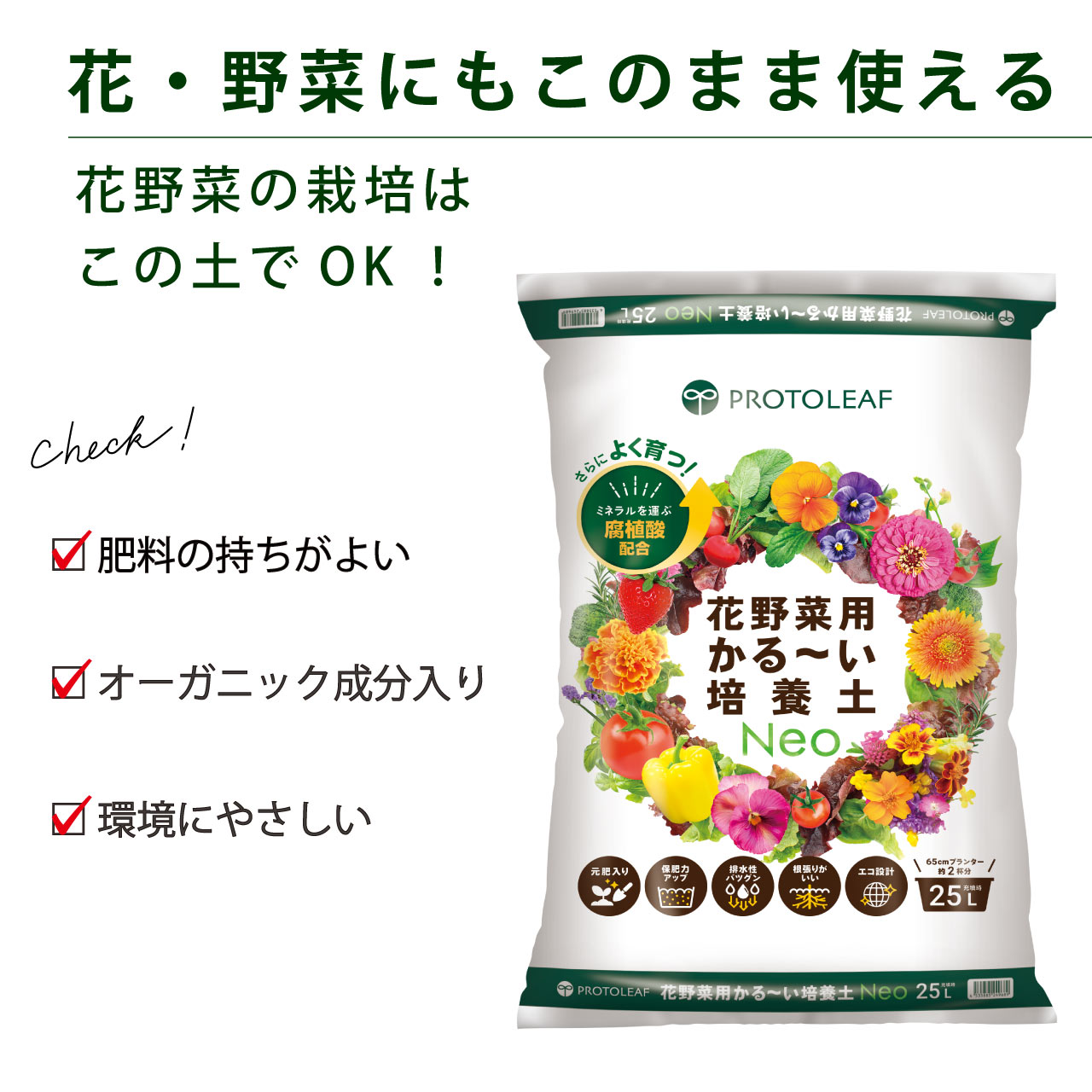 花野菜用かる~い培養土は主にココヤシピートでできていることから、とても軽く、はじめてガーデニングをされる方でも取扱いが楽な培養土です。