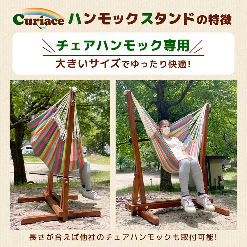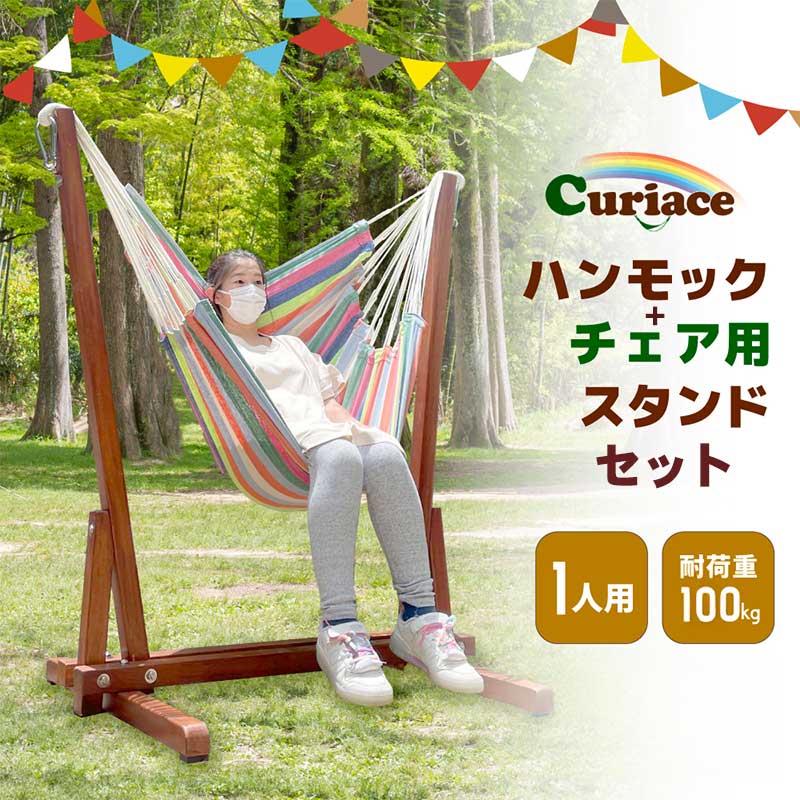 自宅の庭やバルコニー、リビングに自然の安らぎをプラスする、チェアハンモックと専用ガーデンスタンドのセット。