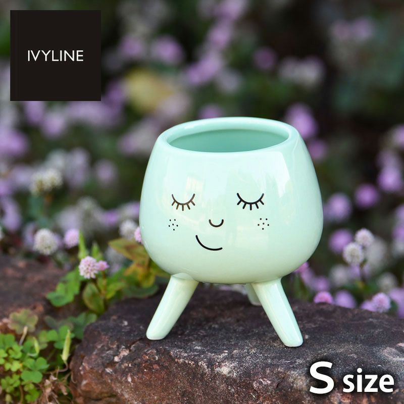 IVYLINE 脚付きフェイスポット Sサイズ ミントグリーン 直径約7cm 植木鉢 鉢底穴なし 陶器 ギフト