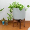 木製のスタンドとセットの、お気に入りの観葉植物を飾るのにピッタリなオシャレな鉢カバーです。