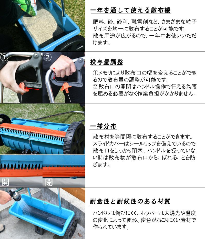 スプレッダー 芝刈機・はさみ 散水 更新作業 雑草・藻・苔除去 落ち葉拾い